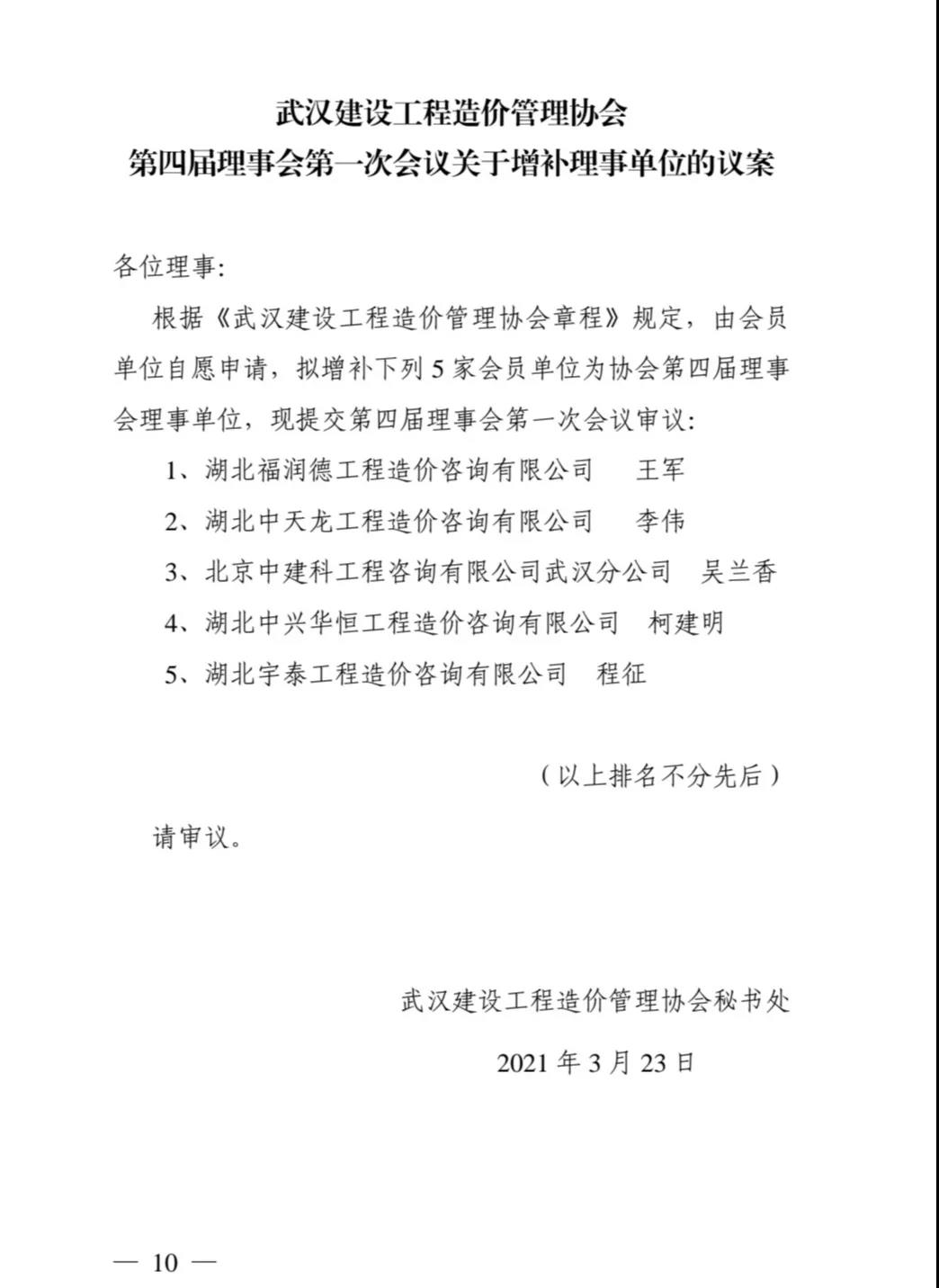 會(huì)議第二項(xiàng)流程,由武漢造價(jià)協(xié)會(huì)會(huì)長(zhǎng)、我司董事長(zhǎng)巫世峰宣讀本屆理事會(huì)增補(bǔ)理事單位名單,第四屆理事會(huì)審議并舉手表決。