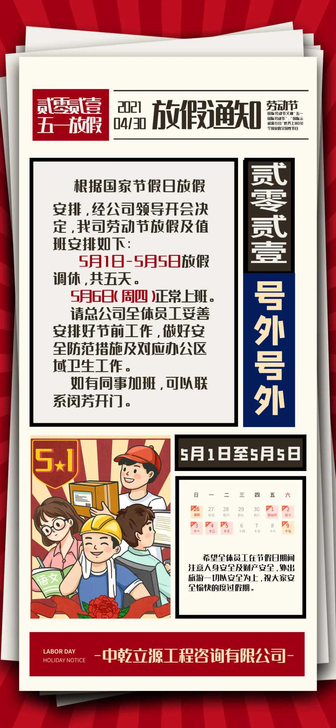 五一是所有勞動(dòng)者的節(jié)日,中乾立源向全體員工致以節(jié)日的問(wèn)候和誠(chéng)摯的祝福!向在中乾立源發(fā)展過(guò)程中作出貢獻(xiàn)的的勞動(dòng)者們,致以崇高的敬意!