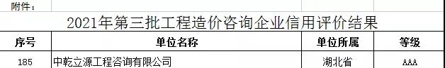 經(jīng)各省工程造價管理協(xié)會(中價協(xié)工作委員會)初評,中價協(xié)組織專家評審,從企業(yè)經(jīng)營業(yè)績、技術(shù)力量、履約能力等綜合實力出發(fā),在2021年度全國工程造價咨詢企業(yè)信用評價中,中乾立源工程咨詢有限公司被評為AAA級企業(yè)。
