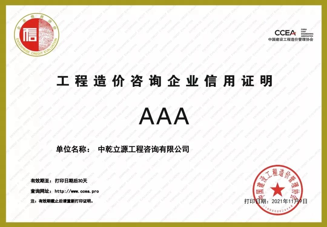 中乾喜訊|中乾立源在2021年度全國(guó)工程造價(jià)咨詢(xún)企業(yè)信用評(píng)價(jià)中被評(píng)為AAA級(jí)企業(yè),并獲得全過(guò)程工程咨詢(xún)企業(yè)能力服務(wù)等級(jí)一級(jí)證書(shū)