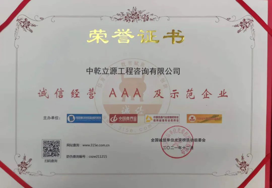 中乾立源榮獲誠(chéng)信經(jīng)營(yíng)AAA及示范企業(yè)榮譽(yù)