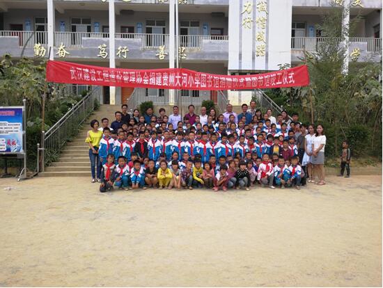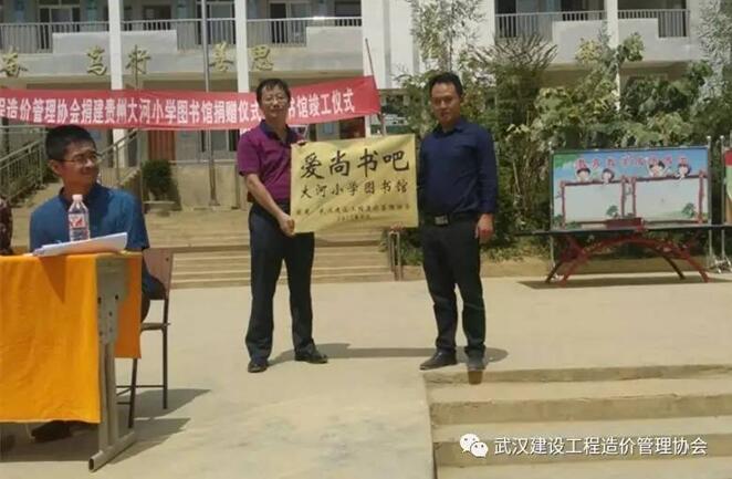 2017年9月1日,秋意濃濃,伴隨著五星紅旗冉冉升起,武漢建設(shè)工程造價(jià)管理協(xié)會捐建貴州大河小學(xué)圖書館捐贈儀式暨圖書館竣工儀式在貴州大河小學(xué)隆重舉行。武漢建設(shè)工程造價(jià)管理協(xié)會汪國剛會長、熊偉副會長、中乾立源黨支部書記張楊及其它會員單位負(fù)責(zé)人、畢節(jié)市金海湖新區(qū)教科文衛(wèi)局王毅副局長、雙山鎮(zhèn)黨委書記王偉、大河小學(xué)沈長春校長等領(lǐng)導(dǎo)共同參與本次儀式。武漢建設(shè)工程造價(jià)管理協(xié)會捐建貴州大河小學(xué)圖書館活動前期由恒大集團(tuán)扶貧項(xiàng)目潘榕經(jīng)理牽線,在協(xié)會領(lǐng)導(dǎo)的宣傳下,短短一周時(shí)間協(xié)會及會員單位共同籌集16.55萬元資金定向捐贈給大河小學(xué)圖書館新建項(xiàng)目。中乾立源積極響應(yīng)行業(yè)協(xié)會號召,在黨支部的組織下全體黨員參與本次捐贈活動。