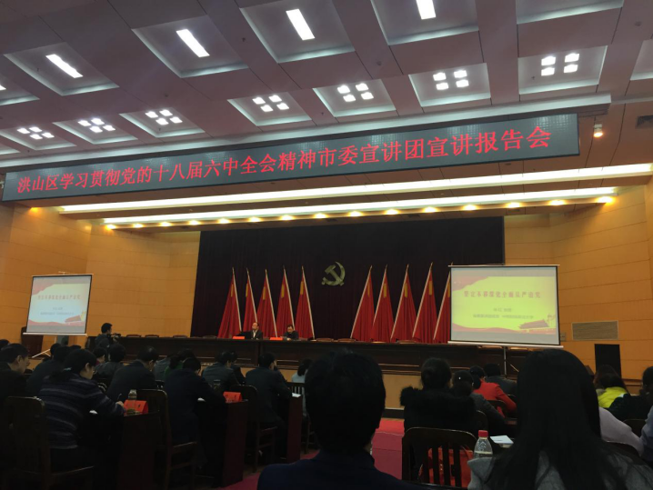 11月17日下午,黨的十八屆六中全會(huì)精神武漢市委宣講團(tuán)報(bào)告會(huì)在洪山區(qū)機(jī)關(guān)會(huì)議中心舉行,市委宣講團(tuán)成員、中南財(cái)經(jīng)政法大學(xué)張紅教授作題為《堅(jiān)定不移深化全面從嚴(yán)治黨》報(bào)告。我公司支部書記參會(huì)學(xué)習(xí)。