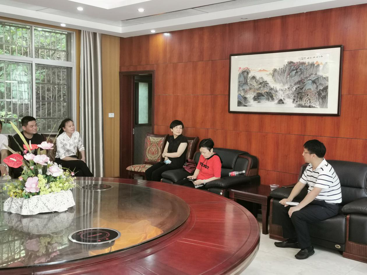 (洪山區(qū)區(qū)工商聯(lián)秘書長劉興(右二)、中乾立源董事長巫世峰(右一)與清水塘村委成員座談)