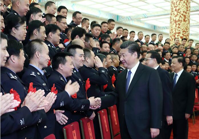 在熱烈的掌聲中,習(xí)近平發(fā)表重要講話。習(xí)近平首先表示,這次會議是全國公安戰(zhàn)線的一次群英會,看到大家精神抖擻、斗志昂揚,我感到非常高興。大家都在各自崗位上作出了出色成績,不僅是全國公安系統(tǒng)的學(xué)習(xí)榜樣,也是全社會崇尚的英雄模范。我相信,這次表彰,對弘揚主旋律、唱響正氣歌、傳播正能量,激勵全國公安機(jī)關(guān)和公安隊伍更好擔(dān)負(fù)起黨和人民賦予的重大使命,必將產(chǎn)生極大推動作用。