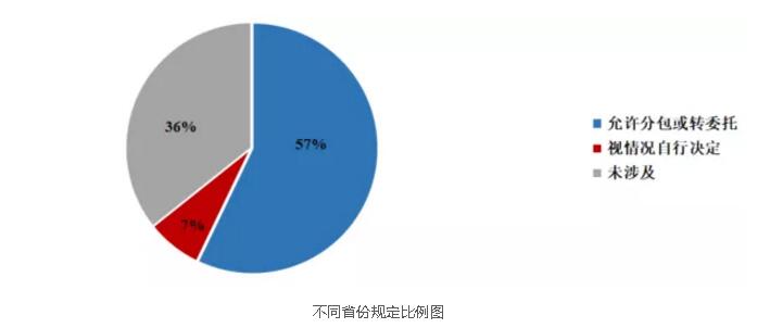 目前明確允許分包或轉(zhuǎn)委托的有:江蘇、福建、廣東、廣西、吉林、河南、安徽和陜西;其中除福建和江蘇以外,均明確規(guī)定全過程工程咨詢單位應(yīng)“自行完成自有資質(zhì)證書許可范圍內(nèi)的業(yè)務(wù)”。