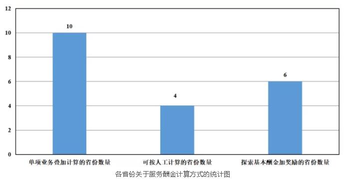 各省份關(guān)于服務(wù)酬金的計算方式統(tǒng)計如圖所示: