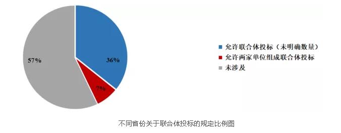 地方目前明確允許聯(lián)合體投標(biāo)的有:江蘇、福建、四川、寧夏、安徽和內(nèi)蒙古,其中四川僅明確由兩家單位組成的聯(lián)合體,江蘇、福建、寧夏和內(nèi)蒙古對于聯(lián)合體數(shù)量并未規(guī)定。