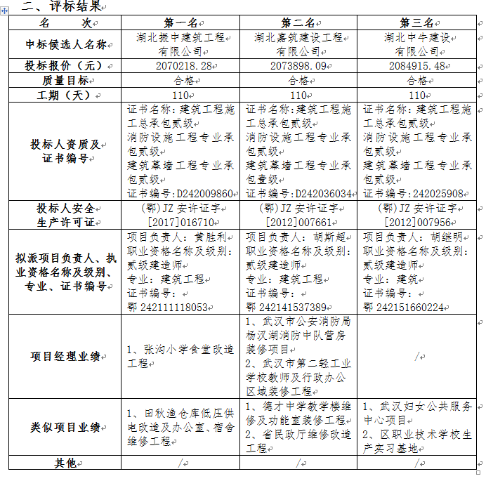 中國(guó)人民銀行紅安縣支行營(yíng)業(yè)辦公用房維修改造項(xiàng)目已經(jīng)中國(guó)人民銀行武漢分行批準(zhǔn)建設(shè),依法進(jìn)行公開(kāi)招標(biāo),并于2019年4月9日完成評(píng)標(biāo)工作。評(píng)標(biāo)委員會(huì)成員由評(píng)標(biāo)專家戴春俐、徐爽、黃正東、張春、祝正頂共5人組成。根據(jù)評(píng)標(biāo)委員會(huì)提交的評(píng)標(biāo)報(bào)告,中國(guó)人民銀行黃岡市中心支行已經(jīng)確認(rèn)評(píng)標(biāo)結(jié)果,現(xiàn)進(jìn)行評(píng)標(biāo)結(jié)果公示。