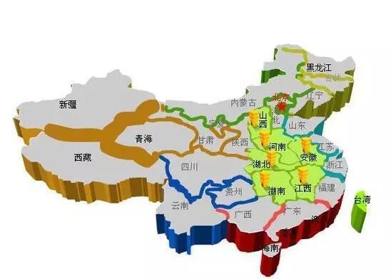 中部地區(qū)包括河南、山西、安徽、江西、湖北和湖南六省,是中國經(jīng)濟(jì)發(fā)展的第二梯隊(duì)。2006年,為促進(jìn)中部地區(qū)六省經(jīng)濟(jì)快速發(fā)展,中共中央提出了“中部崛起”的戰(zhàn)略,曾出臺(tái)促進(jìn)中部地區(qū)崛起規(guī)劃。