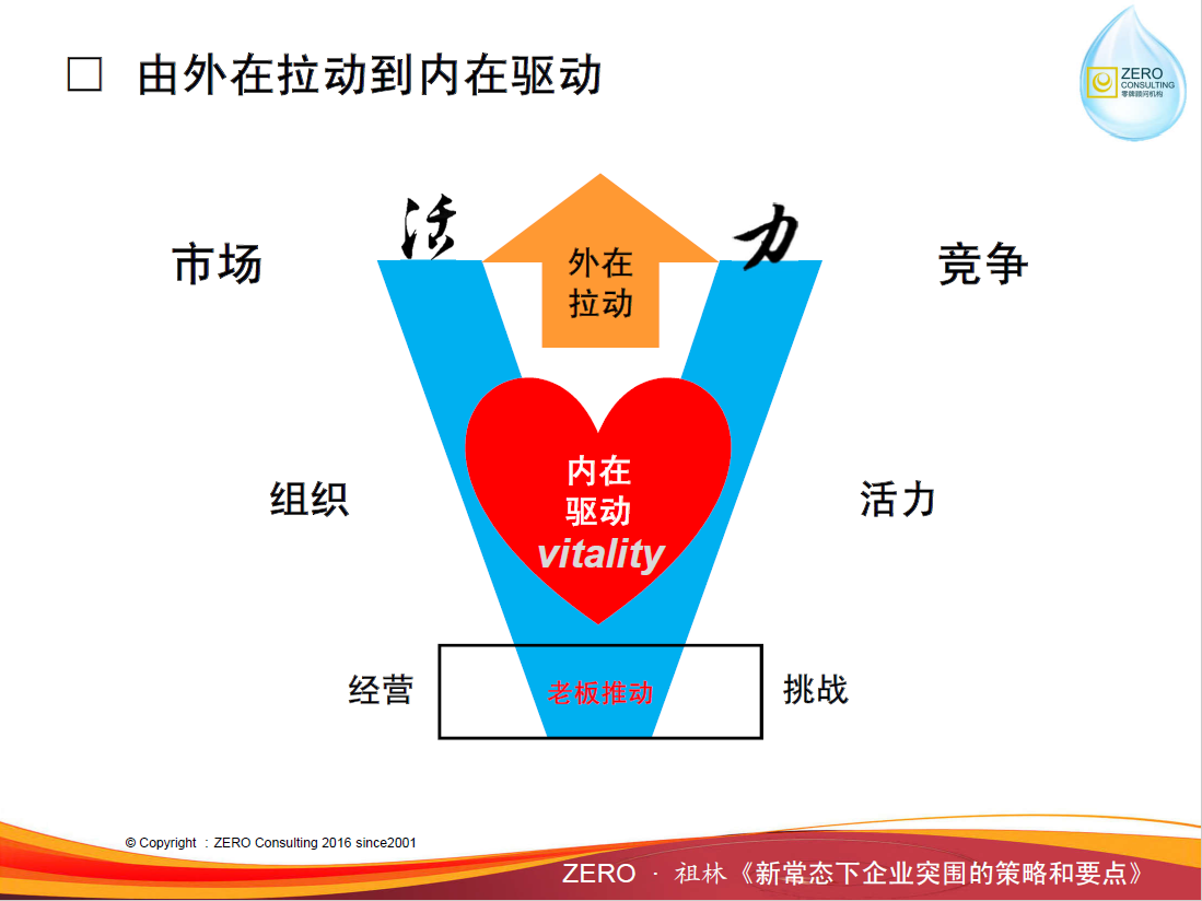 如何應(yīng)對日新月異的挑戰(zhàn),實(shí)現(xiàn)企業(yè)可持續(xù)發(fā)展?是當(dāng)今企業(yè)急需解決的難題。祖林教授提供的解決方案就是構(gòu)建“水樣組織”。水樣組織的含義是出現(xiàn)問題時不但從業(yè)務(wù)層面和微觀運(yùn)營方面進(jìn)行微創(chuàng)新優(yōu)化,同時從頂層設(shè)計進(jìn)行思考、判斷和創(chuàng)新優(yōu)化,建立天性應(yīng)變的自組織力。