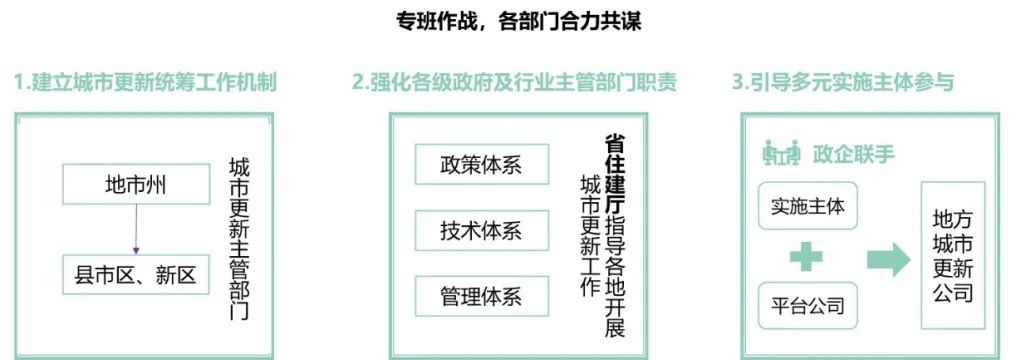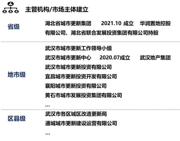 省級、地市級有意成立主體推進城市更新,但是多數(shù)縣市處于摸索甚至空白,缺乏推進支撐。