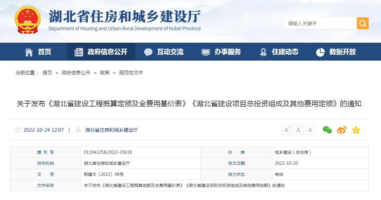關(guān)于發(fā)布《湖北省建設(shè)工程概算定額及全費(fèi)用基價(jià)表》《湖北省建設(shè)項(xiàng)目總投資組成及其他費(fèi)用定額》的通知