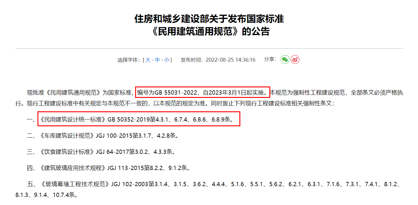 敲黑板:國家標(biāo)準(zhǔn)《民用建筑通用規(guī)范》GB 55031-2022全文強(qiáng)制,自2023年3月1日起實(shí)施!