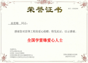 我司董事長巫世峰榮獲“全國學(xué)雷鋒愛心人士”光榮稱號!《祖國》報刊對巫世峰先進事跡進行專題報道!