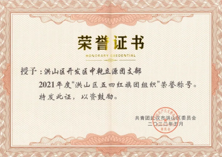 中乾立源團支部榮獲2021年度洪山區(qū)“五四紅旗團組織”榮譽稱號