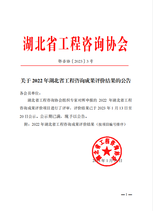 近日,湖北省工程咨詢協(xié)會發(fā)布2022年湖北省工程咨詢成果評價結(jié)果公告,我司申報的《當(dāng)陽市博物館項目》榮獲三等獎。