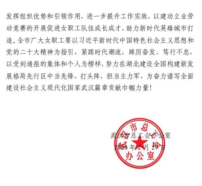 近日,武漢市總工會表彰了2022年度武漢市女職工建功立業(yè)勞動(dòng)競賽工作優(yōu)秀集體和個(gè)人。中乾立源造價(jià)部榮獲“2022年度女職工建功立業(yè)標(biāo)兵崗”,工會主席文金枝榮獲“2022年度武漢市優(yōu)秀女職工工作者”稱號!