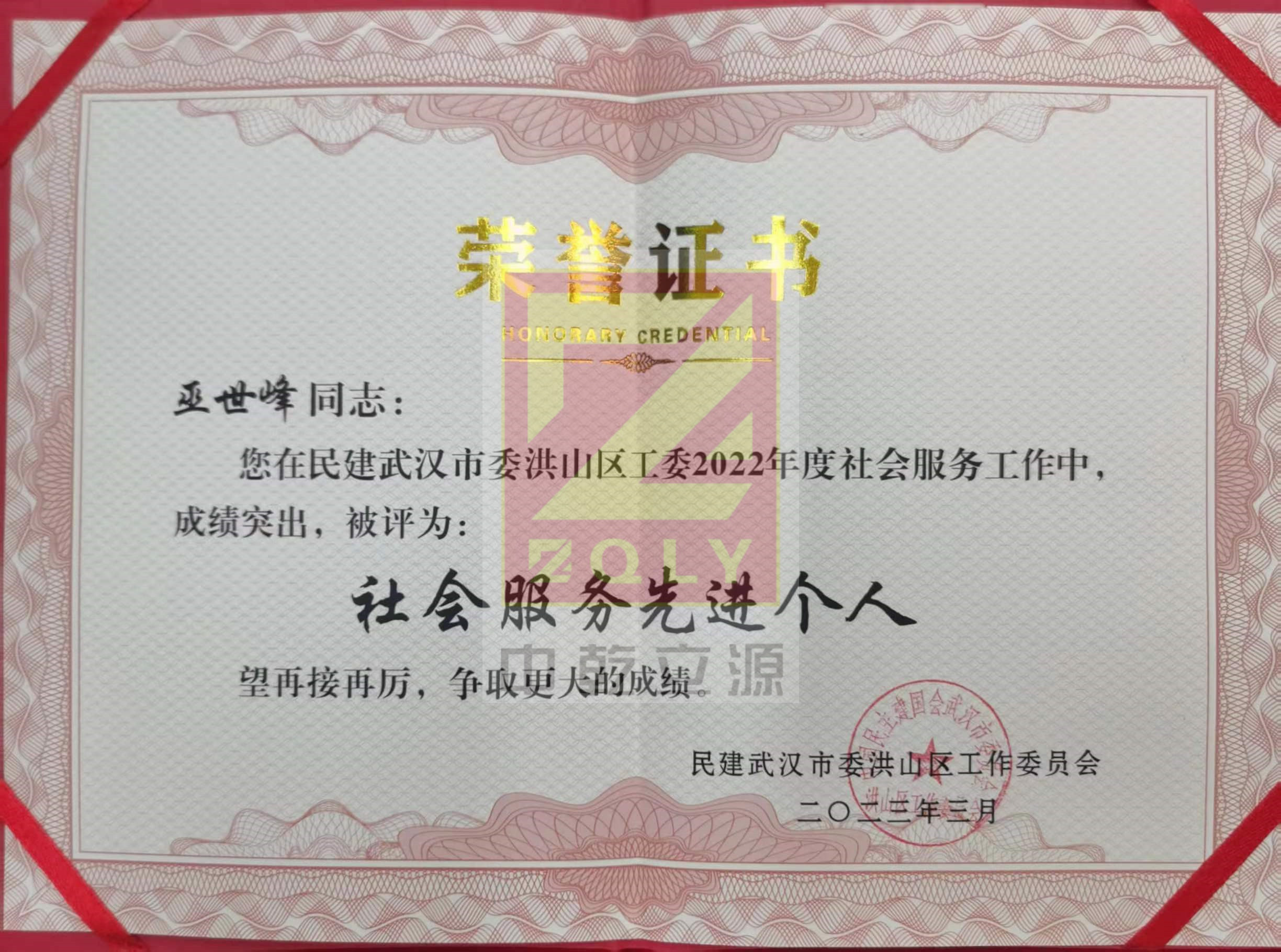 【2023】董事長巫世峰榮獲民建洪山區(qū)工委“2022年度社會(huì)服務(wù)先進(jìn)個(gè)人”