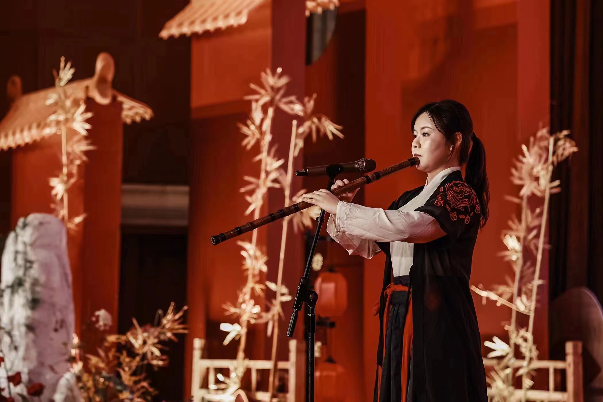 一場簫獨奏,演奏員工通過自己的音樂才華,展現(xiàn)了中國傳統(tǒng)文化中的美妙。她通過自己的努力、執(zhí)著和對音樂的熱愛,締造出了美妙的簫聲。