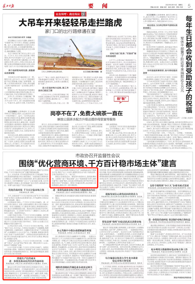 6月13日,武漢市政協(xié)召開(kāi)監(jiān)督性主席會(huì)議,圍繞“優(yōu)化營(yíng)商環(huán)境、穩(wěn)定市場(chǎng)主體”主題開(kāi)展協(xié)商監(jiān)督,強(qiáng)調(diào)要認(rèn)真落實(shí)學(xué)習(xí)貫徹習(xí)近平新時(shí)代中國(guó)特色社會(huì)主義思想主題教育要求,深入學(xué)習(xí)貫徹習(xí)近平總書(shū)記關(guān)于優(yōu)化營(yíng)商環(huán)境的重要論述,發(fā)揮人民政協(xié)協(xié)商式監(jiān)督的特色優(yōu)勢(shì),積極為打造一流營(yíng)商環(huán)境、激發(fā)市場(chǎng)主體活力監(jiān)督建言、匯智聚力。市政協(xié)主席楊智出席會(huì)議并講話。