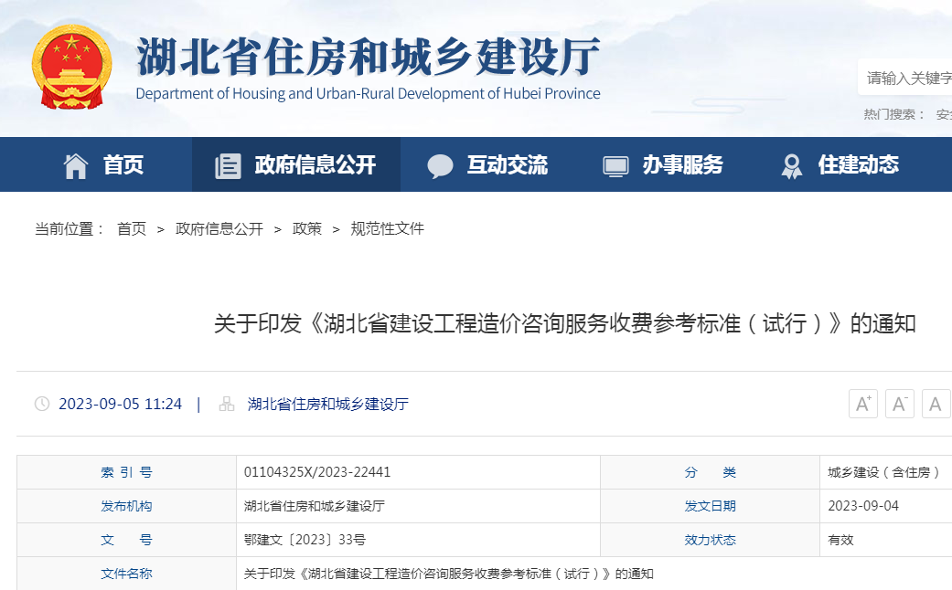 為進一步提升全省工程造價咨詢行業(yè)服務(wù)質(zhì)量,維護公平、有序的執(zhí)業(yè)環(huán)境,保障工程造價咨詢市場各方權(quán)益,促進行業(yè)健康發(fā)展,我廳組織研究制定了《湖北省建設(shè)工程造價咨詢服務(wù)收費參考標(biāo)準(zhǔn)(試行)》,現(xiàn)印發(fā)給你們,供湖北省工程造價咨詢市場各方參考使用。
