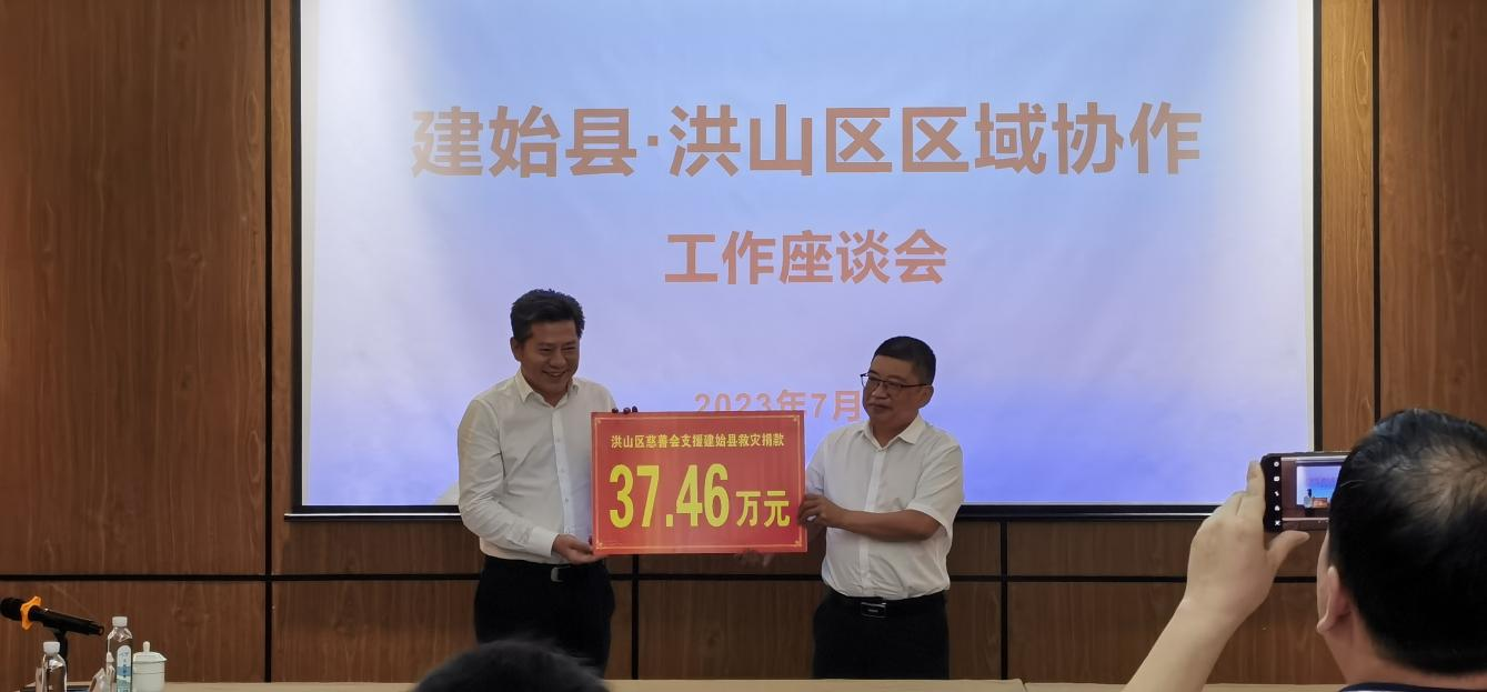 7月8日,區(qū)委副書記、區(qū)長嚴(yán)中興同志一行到建始縣開展區(qū)域協(xié)作座談及捐贈,帶去了洪山區(qū)慈善會會員各界人士慷慨解囊的無私愛心,體現(xiàn)了慈善會的社會責(zé)任和擔(dān)當(dāng),下一步建始縣將妥善使用善款,確保受災(zāi)群眾渡過難關(guān)。