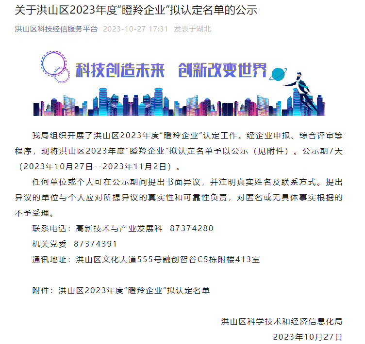 為進(jìn)一步加快高新技術(shù)產(chǎn)業(yè)發(fā)展,培育一批創(chuàng)新性強(qiáng)、增長速度快、發(fā)展前景好的科技企業(yè),洪山區(qū)科學(xué)技術(shù)和經(jīng)濟(jì)信息化局開展了2023年度“瞪羚企業(yè)”認(rèn)定工作。通過組織企業(yè)申報和委托第三方機(jī)構(gòu)評選等程序,近日,洪山區(qū)2023年度“瞪羚企業(yè)”擬認(rèn)定名單正式公示,中乾立源工程咨詢有限公司憑借優(yōu)秀的企業(yè)成長性和技術(shù)創(chuàng)新性成功上榜,入選“瞪羚企業(yè)”榜單!