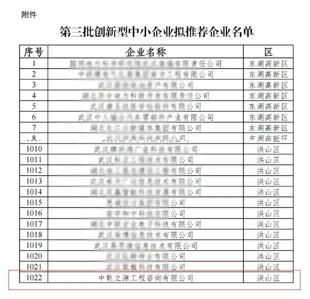 近日,武漢市經(jīng)信局發(fā)布了第三批創(chuàng)新型中小企業(yè)擬推薦名單,中乾立源榜上有名!