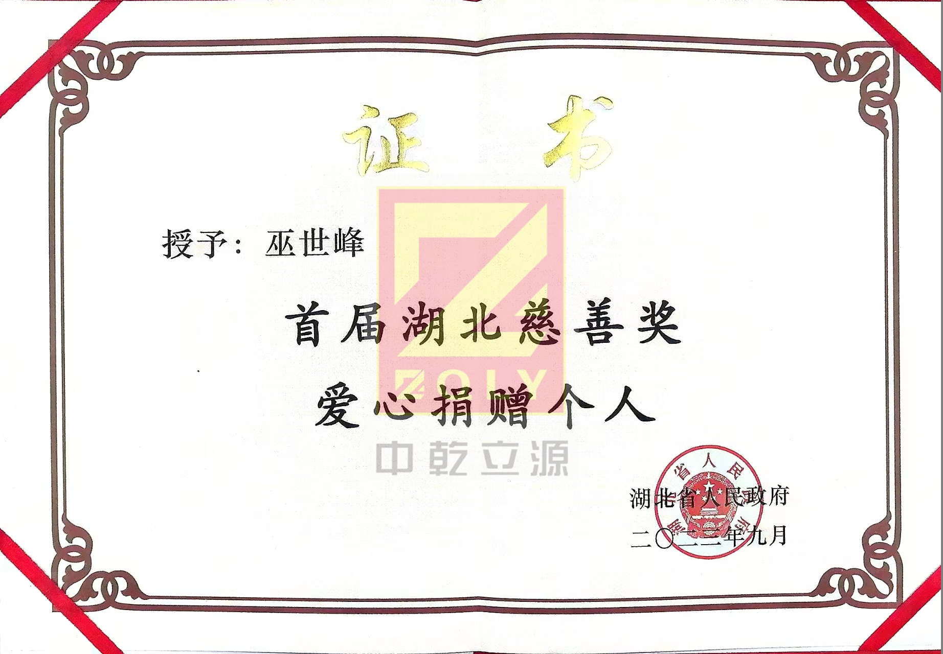 【2023】董事長巫世峰獲首屆湖北慈善獎“愛心個人”榮譽稱號