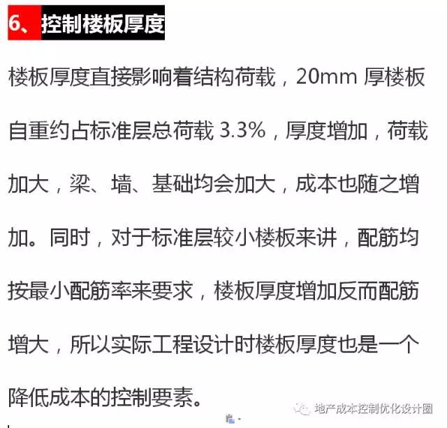 樓蓋造價(jià)占結(jié)構(gòu)總造價(jià)的9%~13%,其重量占整個(gè)房屋重量的22%左右。梁屬于樓蓋的一部分,其布置直接影響著板的受力情況和配筋,合理布置梁也成為了控制造價(jià)的關(guān)鍵。對(duì)于常見的8.1mx8.1m~9.0mx9.0m柱網(wǎng),標(biāo)準(zhǔn)層等承受荷載較小的樓板優(yōu)先考慮平行梁或十字梁,其大概綜合成本(計(jì)算鋼筋的數(shù)量、混凝土的數(shù)量和模板的數(shù)量)會(huì)比井字梁低10%左右,而對(duì)于地下室頂板等承受荷載較大的樓板應(yīng)選用井字梁,以滿足協(xié)調(diào)受力、保證凈高的要求。同時(shí),可以取消那些小跨度樓板下部為支撐上部較短填充墻而設(shè)置的小梁(如廚房、衛(wèi)生間等),因?yàn)闃前灞旧碜阋猿休d那些填充墻,不需要單獨(dú)設(shè)梁,這樣梁減少,成本降低,空間也變好。在大跨度框架梁配筋方面,應(yīng)避免上部粗大鋼筋全梁貫通,盡量采用較小直徑鋼筋配置,這樣可以有效節(jié)省框架梁的鋼筋用量。