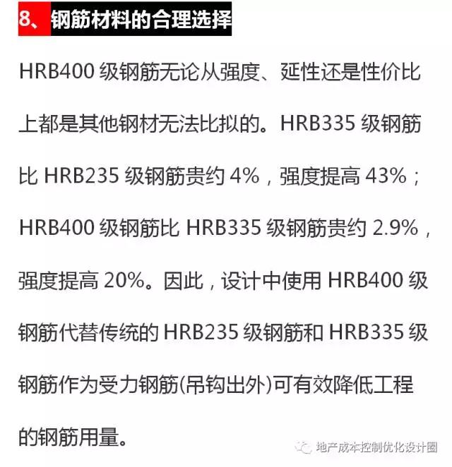 其次,要把握好支護(hù)成本的降低,盡量抬高整個(gè)±0.000的標(biāo)高,因?yàn)檫@不僅降低了支護(hù)的成本還節(jié)約了土方的開挖和外運(yùn),減少了地下水豐富區(qū)域的水壓力的影響,對(duì)地下室的底板和抗拔樁的設(shè)計(jì)都起到了有利影響。對(duì)地下室的結(jié)構(gòu)成本控制還要把握好地下室頂部覆土厚度的控制和頂部活荷載的控制,地下室頂部覆土的厚度一般與景觀布置和地下管線的埋設(shè)要求有關(guān)系,這就要求在設(shè)計(jì)管理過程中把景觀設(shè)計(jì)和管網(wǎng)設(shè)計(jì)提前介入,做好精細(xì)化設(shè)計(jì)和專業(yè)配合工作,嚴(yán)格控制好地下室頂部覆土的厚度。最后,要把握好地下室頂板和底板的布置方案,對(duì)這些結(jié)構(gòu)布置方案要做好多方案成本比較,要全方位的把握方案的可行性,對(duì)方案的取舍要慎之又慎。
