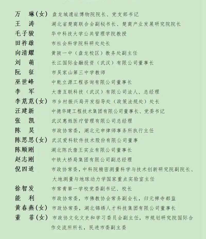 武漢市政協(xié)2023年度履職優(yōu)秀委員名單