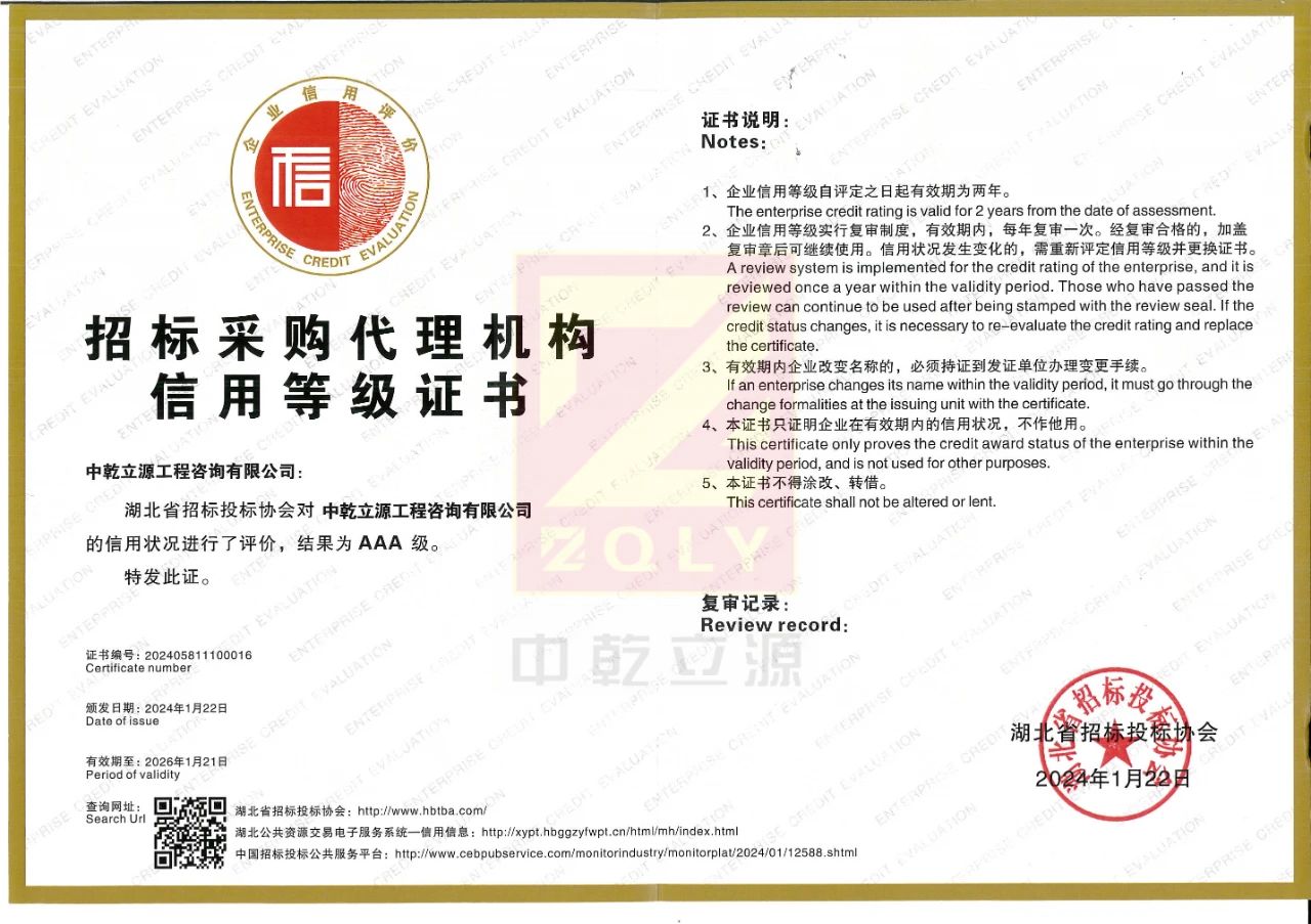AAA級是湖北省招標采購代理機構誠信創(chuàng)優(yōu)評級最高等級。中乾立源榮獲本次AAA稱號,體現(xiàn)了行業(yè)協(xié)會對公司公信力、影響力的高度認可以及堅守誠信執(zhí)業(yè)、規(guī)范管理經(jīng)營的充分肯定。未來,中乾立源將持續(xù)深化人才引領發(fā)展戰(zhàn)略,不斷加強專業(yè)人才隊伍建設;應用數(shù)字化平臺,進一步優(yōu)化業(yè)務流程、提升服務質量,提供更可靠、可行、可信的高品質采購代理服務。