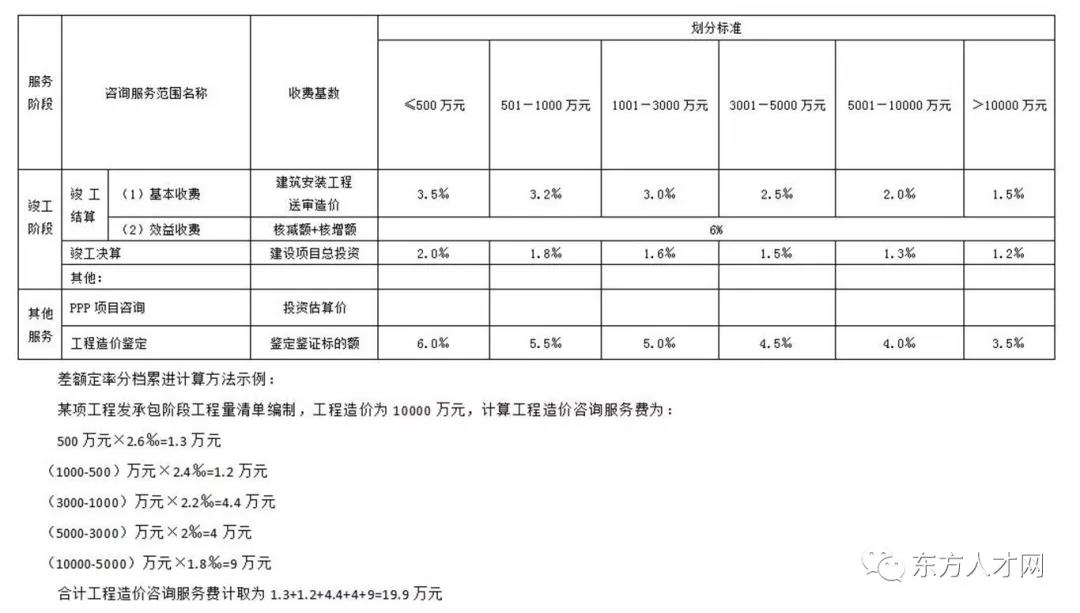 1.工程造價咨詢收費基準價根據項目的類別、工程造價金額等因素采取差額費率分檔累進方法計算;