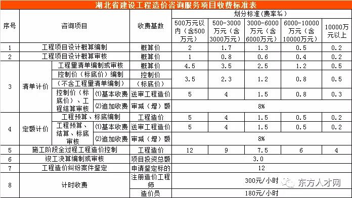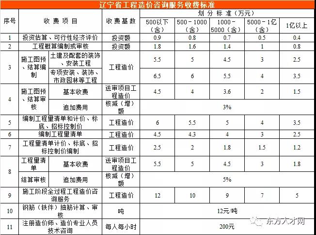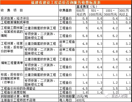 1、工程造價咨詢服務收費額低于3000元的,按3000元收取。