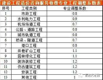 2.投資額較大,計量和計價相對簡單的市政、水利電力、機場、港口、城市軌道等工程,降低其收費系數;