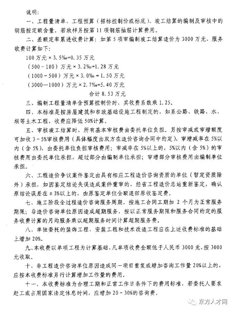 五、工程預算的編制或審核、工程結算的編制或審核等收費標準不包括鋼筋及預埋件的計算,凡要求鋼筋及預埋件計算的按相應的收費標準另行計算。