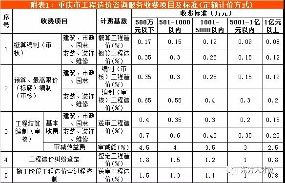 1、單獨“編制工程量清單”咨詢服務按“2.編制工程量清單及計價”同檔費率的60%計費。
