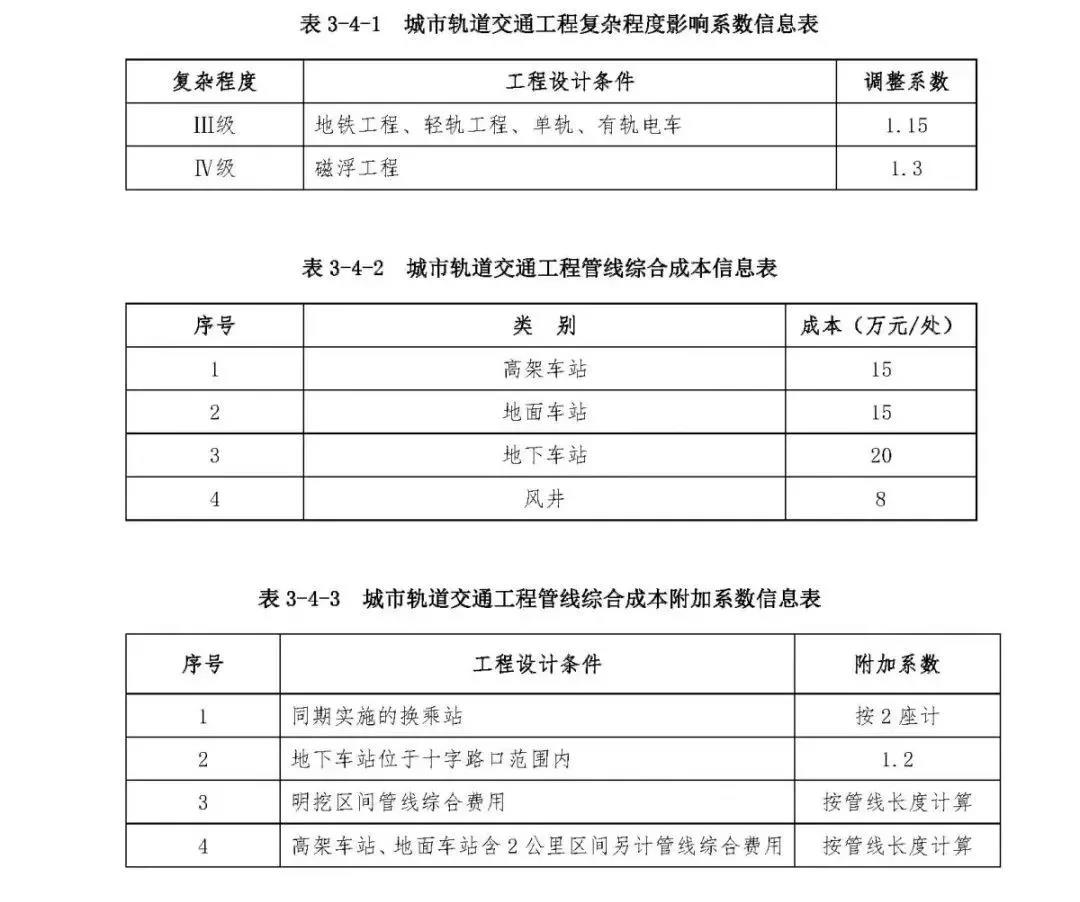 表3.市政工程設計復雜程度影響系數(shù)及成本附加系數(shù)信息表