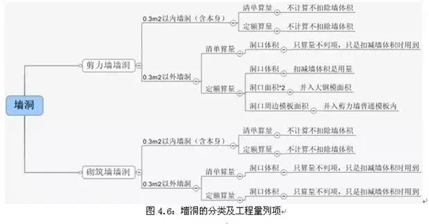 只有在剪力墻上出現(xiàn)墻洞時并且大于0.3平方米時才牽扯到工程量,見圖4.6