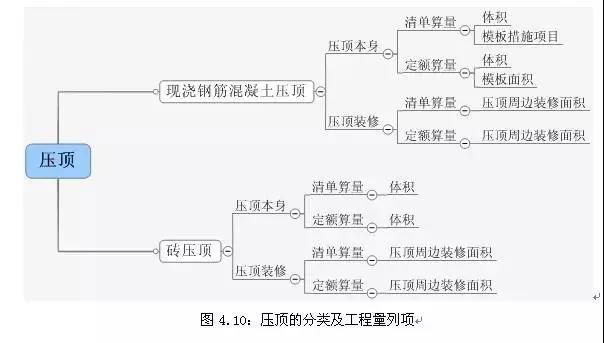 常見的壓頂有現(xiàn)澆鋼筋混凝土壓頂,磚壓頂兩種,其工程量列項見圖4.10