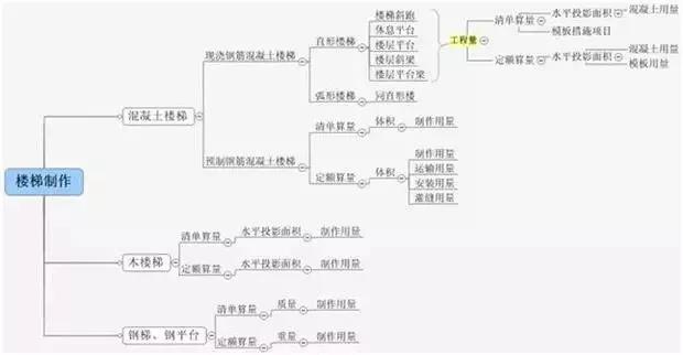 樓梯制作分為混凝土樓梯、木樓梯和鋼梯三種,其工程量列項見圖4.16