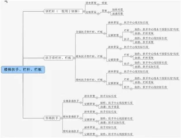 圖4.18:樓梯扶手、欄桿、欄板的分類及工程量列項