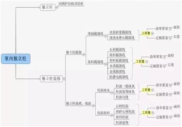 室內(nèi)獨立柱的柱本身列項和前面講過的柱類似,但它往往伴隨著獨立柱的裝修,其工程量列項見圖4.22