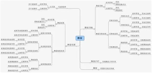 飄窗一般包括飄窗頂板、飄窗底板、飄窗、飄窗護(hù)欄等構(gòu)件,其工程量列項見圖4.34