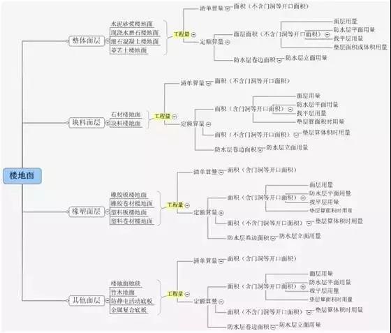 室內(nèi)裝修我們總結(jié)出有樓地面、踢腳、墻裙、墻面、吊頂、天棚保溫、天棚、女兒墻內(nèi)裝修、屋面防水等九大構(gòu)件,我們把它們分成兩部分來講解,樓層室內(nèi)裝修工程量和屋面層室內(nèi)裝修工程量。