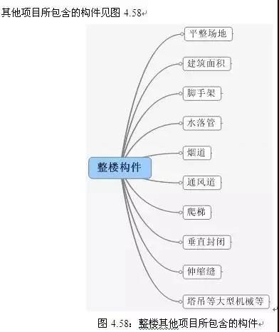 基礎(chǔ)分筏形基礎(chǔ)、條形基礎(chǔ)、獨立基礎(chǔ)、設(shè)備基礎(chǔ)、樁承臺基礎(chǔ)和樁六種情況,其工程量列項見圖4.56