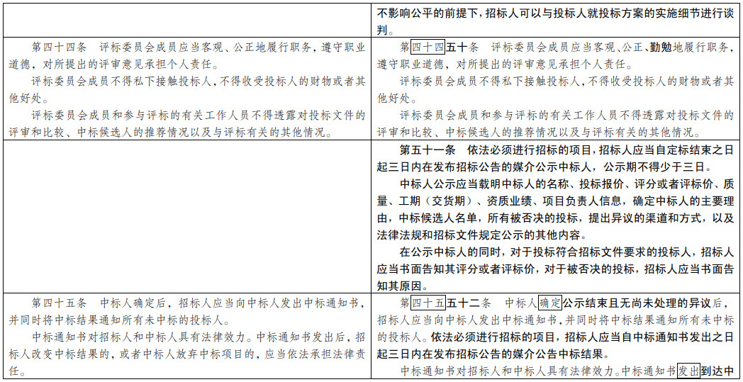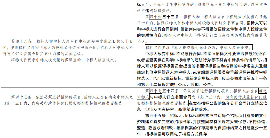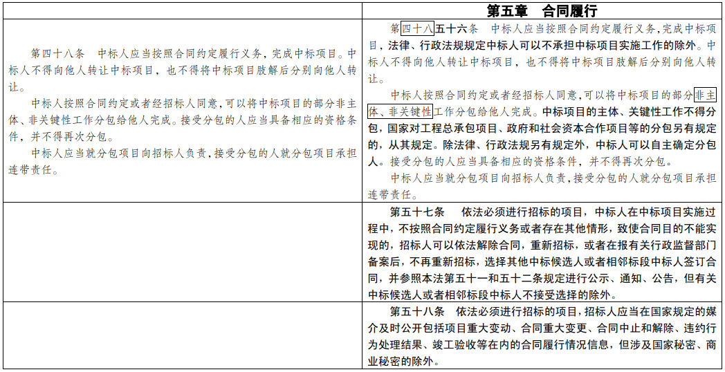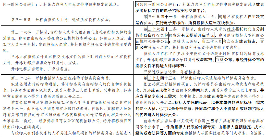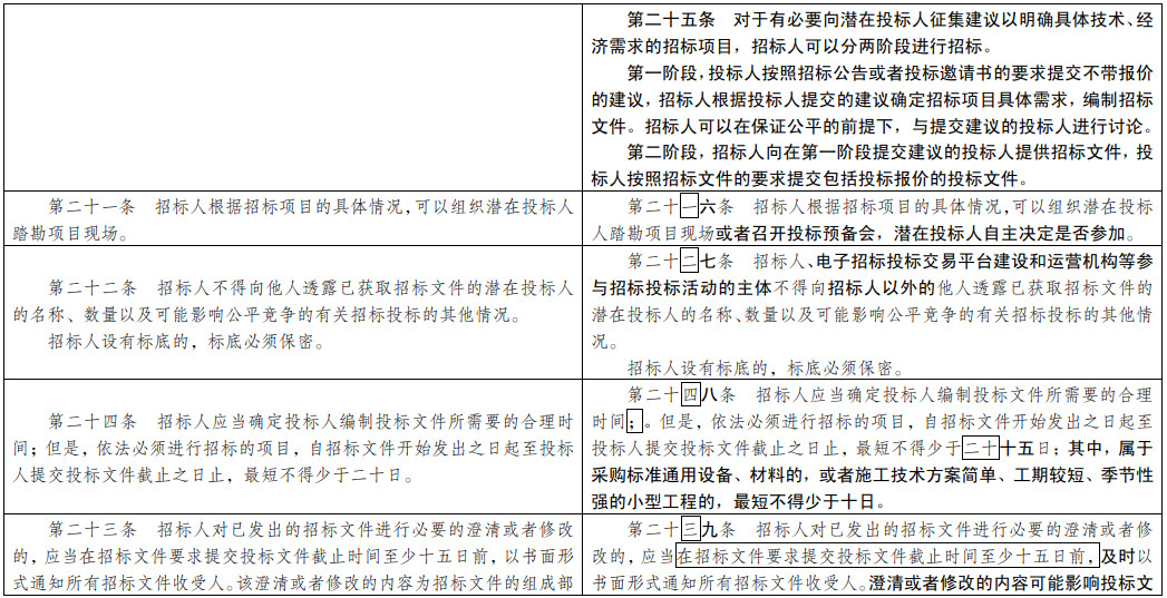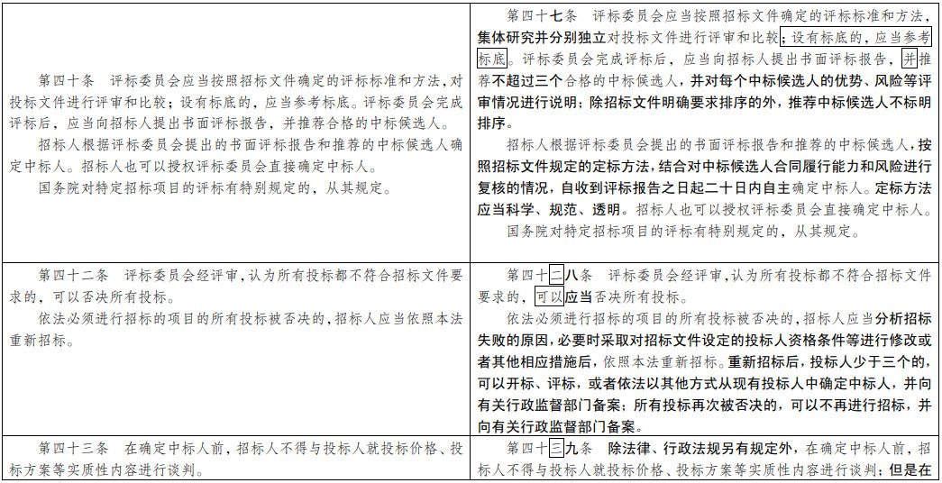 (七)為招投標(biāo)實(shí)踐發(fā)展提供法治保障。明確總承包招標(biāo)、集中招標(biāo)、兩階段招標(biāo)等招標(biāo)組織形式的法律地位。積極促進(jìn)電子招投標(biāo)推廣應(yīng)用。明確政府和社會(huì)資本合作項(xiàng)目遴選社會(huì)資本方有關(guān)招標(biāo)要求。擴(kuò)大了允許自然人投標(biāo)的項(xiàng)目范圍。