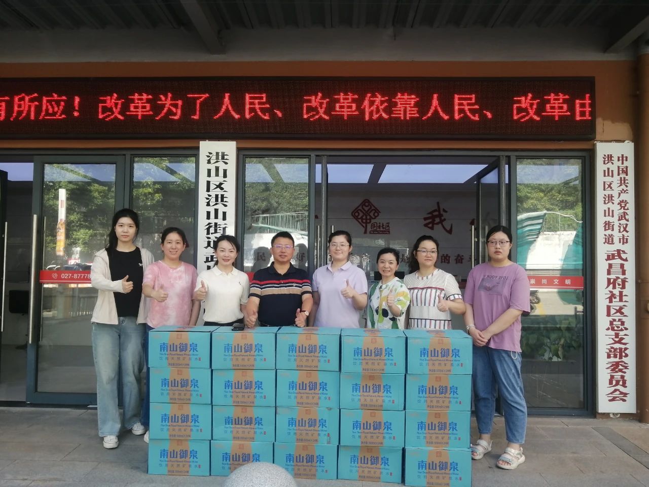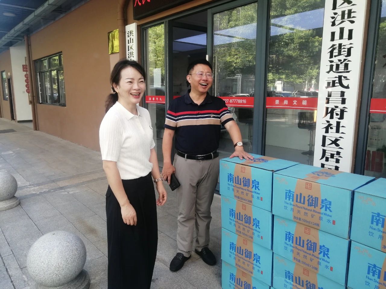 持續(xù)晴熱的高溫,熱浪滾滾,給一線的社區(qū)工作者帶來(lái)了嚴(yán)酷“烤”驗(yàn)。為感謝社區(qū)工作人員在高溫下的默默堅(jiān)守和辛苦付出,7月31日上午,省、市、區(qū)三級(jí)政協(xié)委員,民建會(huì)員、武漢建設(shè)工程造價(jià)管理協(xié)會(huì)會(huì)長(zhǎng)、中乾立源董事長(zhǎng)巫世峰、中乾立源黨支部書記張冰及黨員代表一行,向洪山街道武昌府社區(qū)贈(zèng)送一批礦泉水,為社區(qū)全體工作人員送上一片夏日清涼。